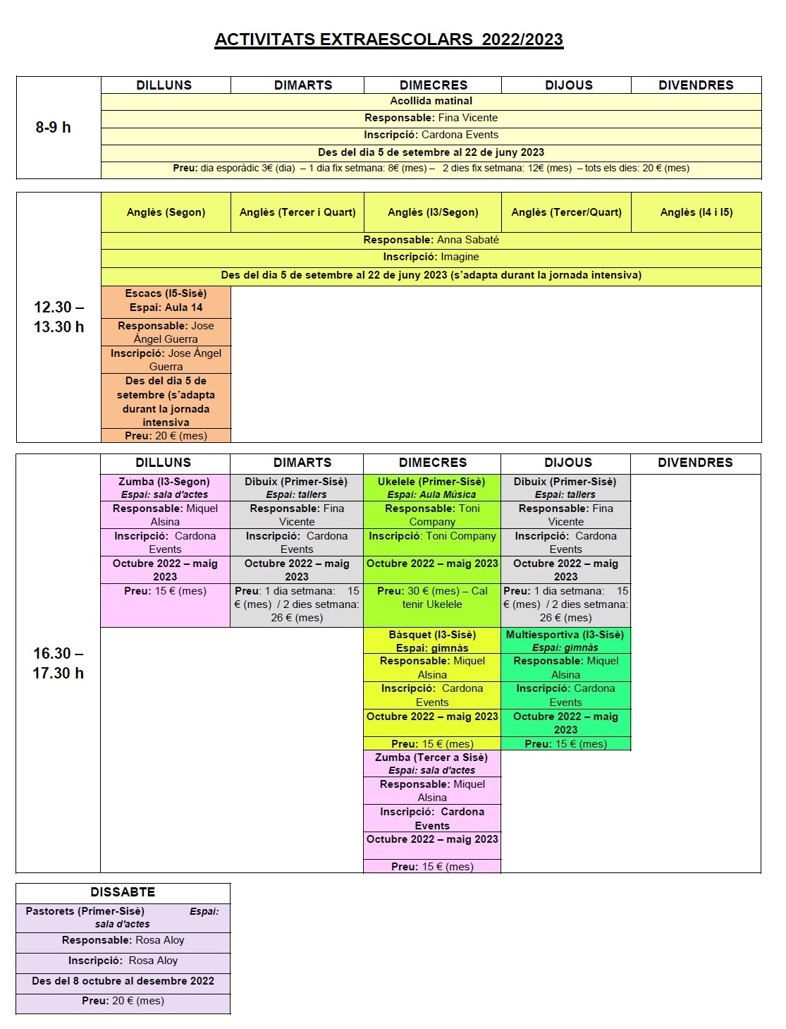 A partir del dia 1 d’agost ja podeu inscriure els vostres fills a les extraescolars de l’escola.